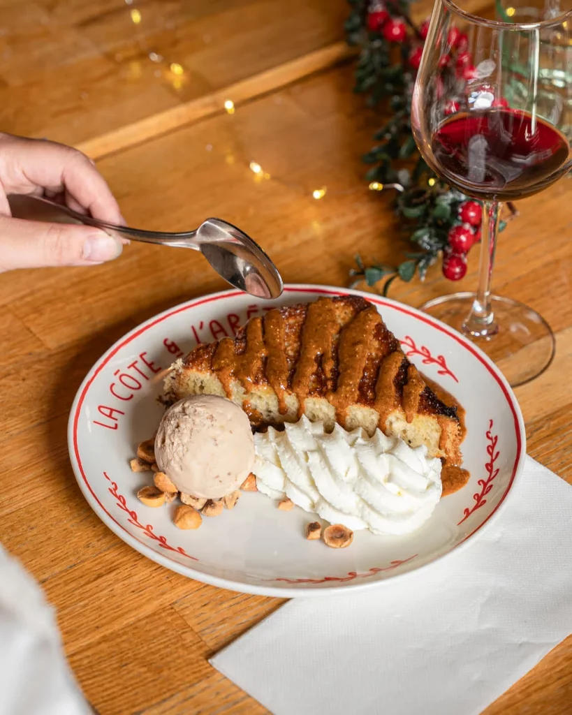 On ‘twiste’ les classiques pour un final ultra-gourmand avec du praliné maison et de la chantilly. Promis, vous oublierez la bûche de l’an dernier.