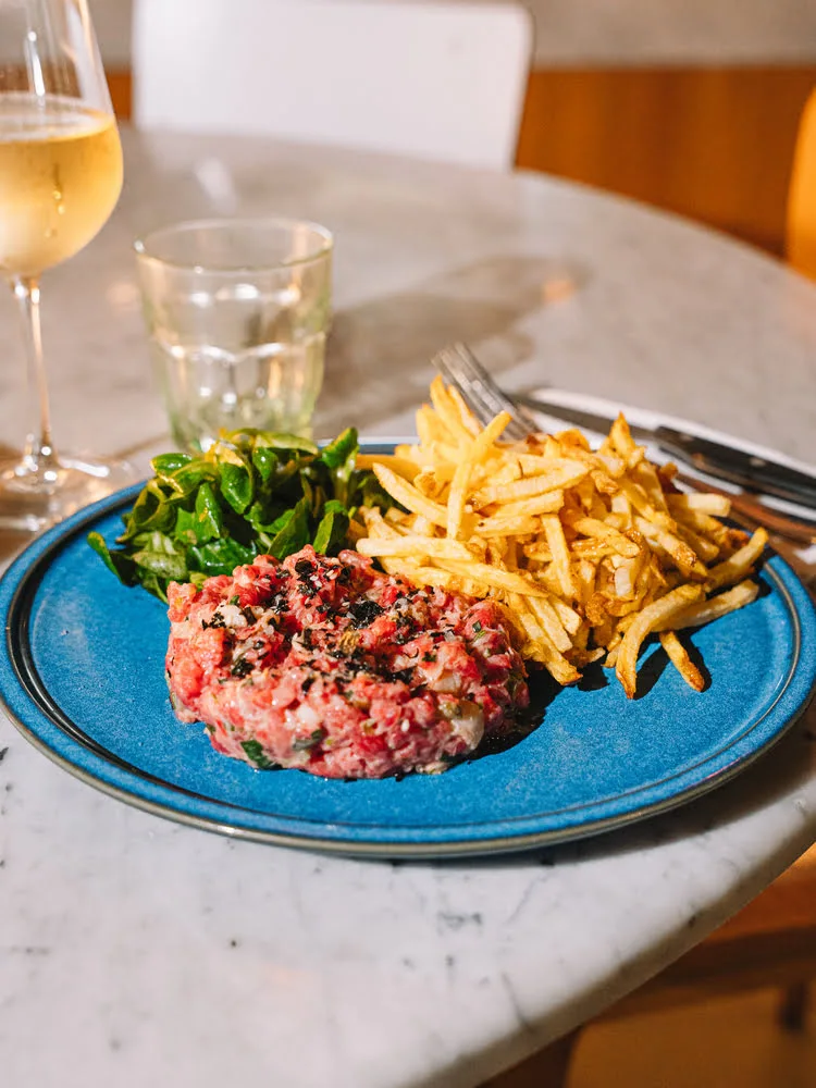 Le tartare de bœuf classique ? Trop sage pour nous. On le marie avec du homard et une huile de homard maison.